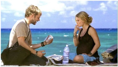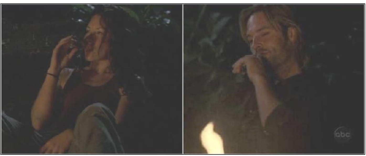 After returning to the beach defeated and without Michael or Walt they seemed helpless and victimized again. Their heads were down as they walked across their campsite to the defeatist music. Then Jack headed over to the beach and sat next to Ana Lucia and we were all like, ‘great, Jack’s mad at Kate for getting herself caught so he’s going to replace her with this new chick’. and then something happened that made all the hairs on my arm stand on end….